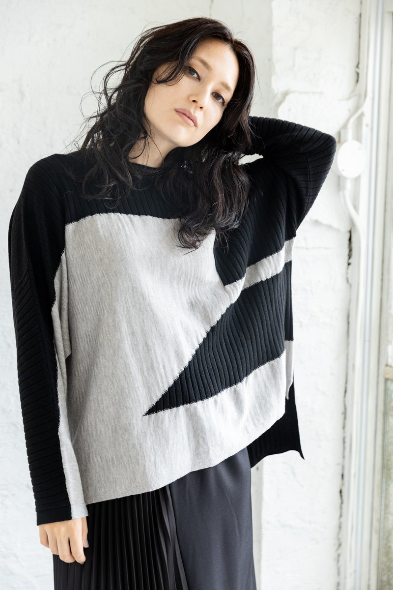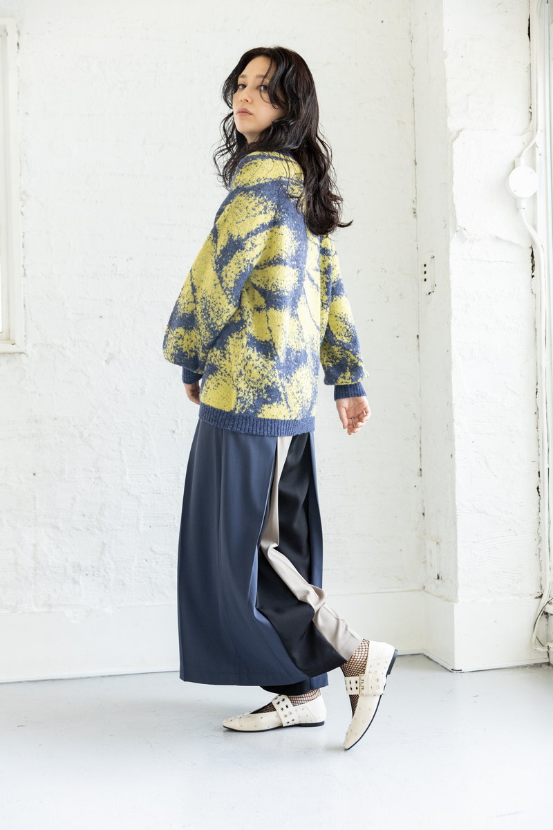 プレイフルなジャガードニットを浮かせない、