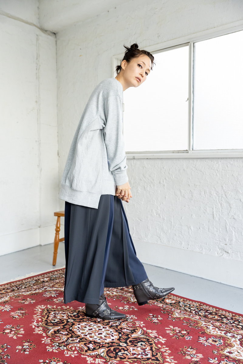 ボトムスはワイド&ロングで、