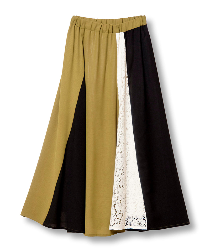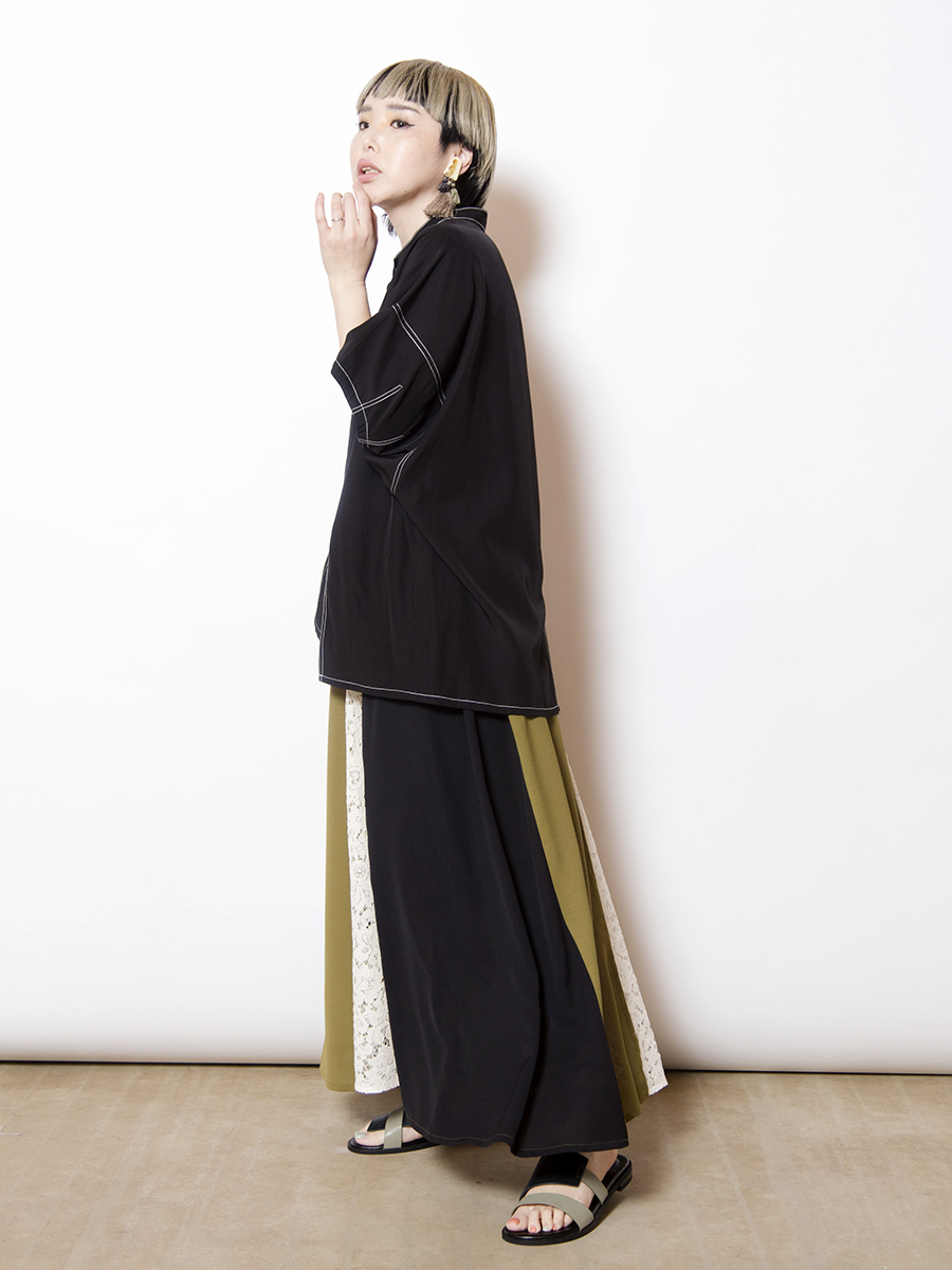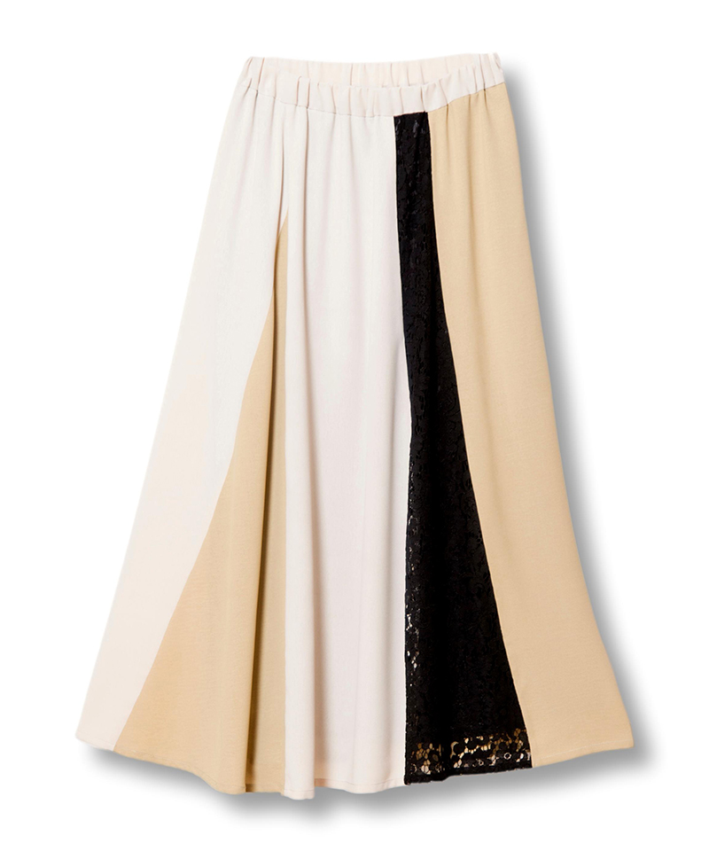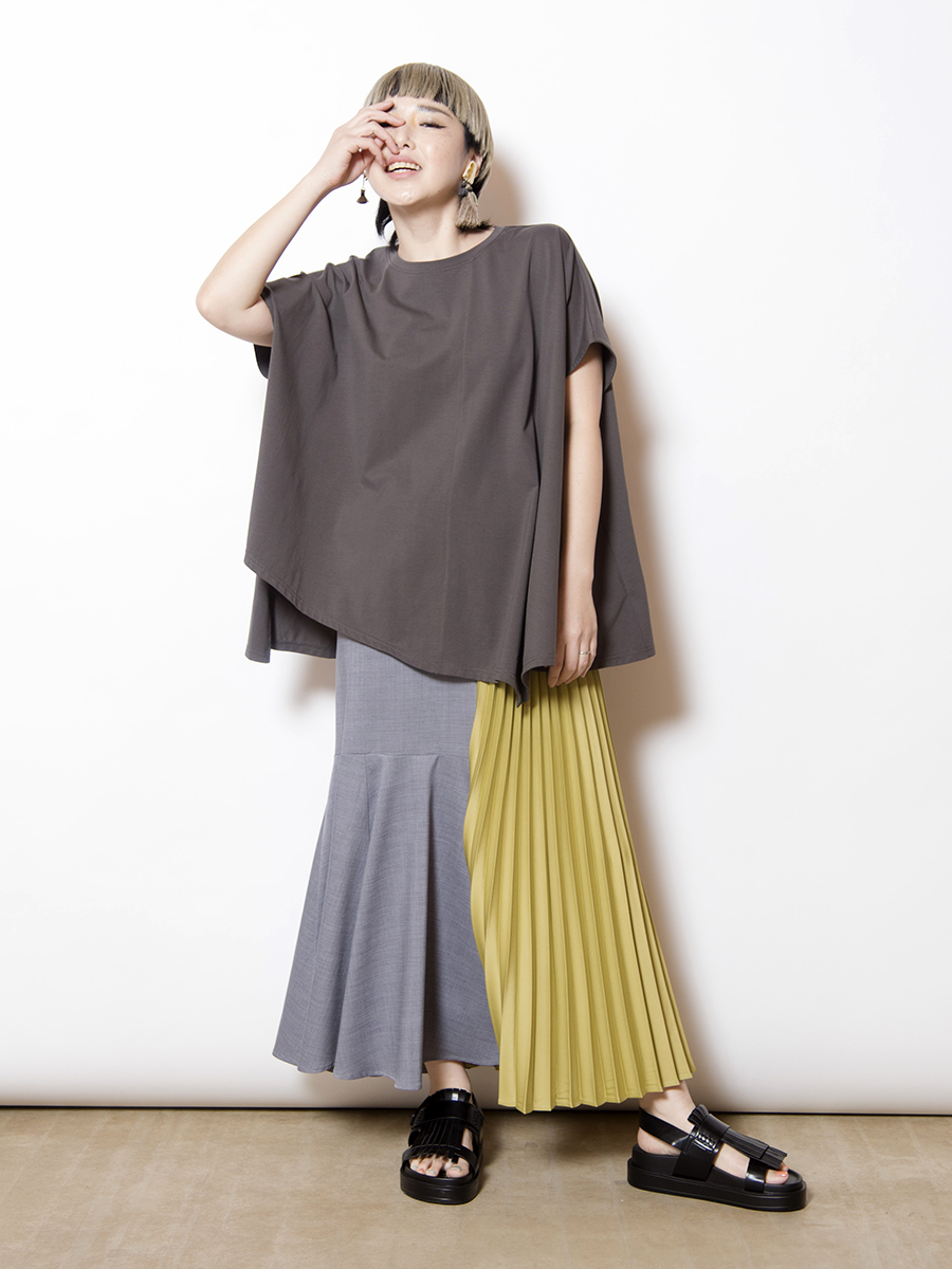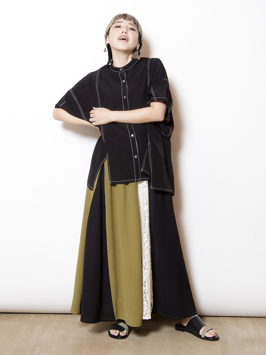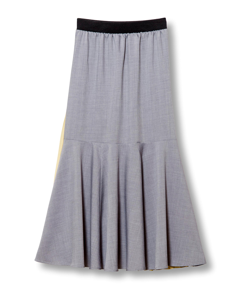 前後で異なるスカートをドッキングした、存在感のあるスカート。