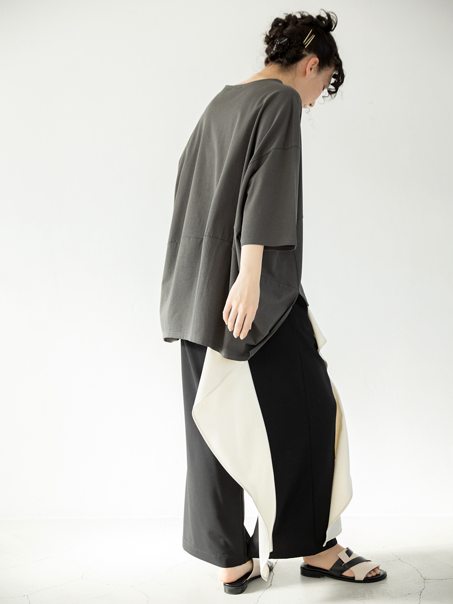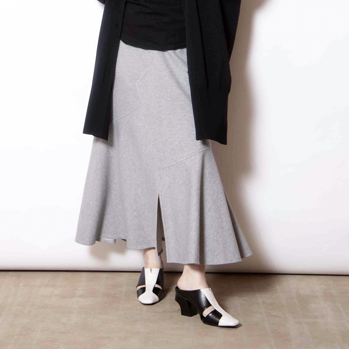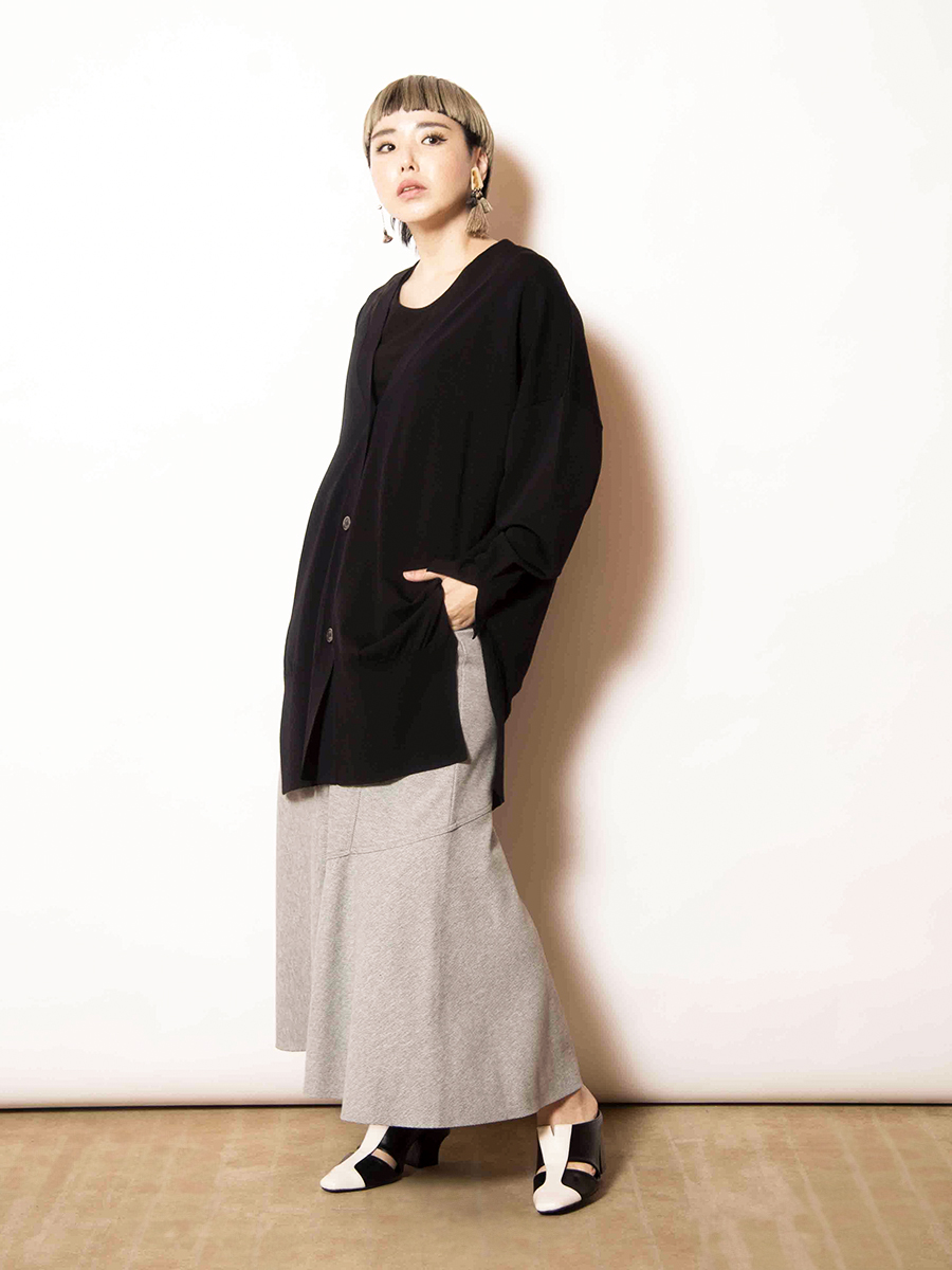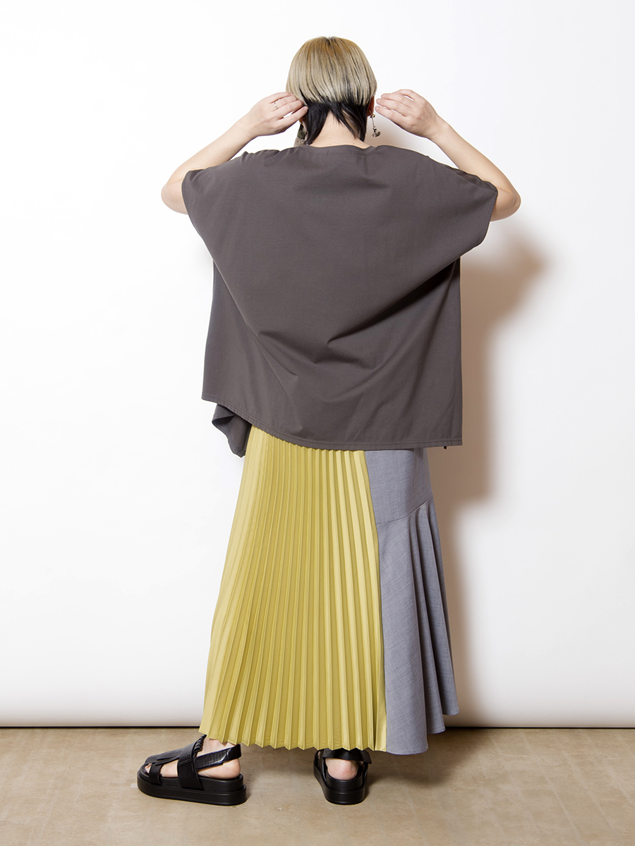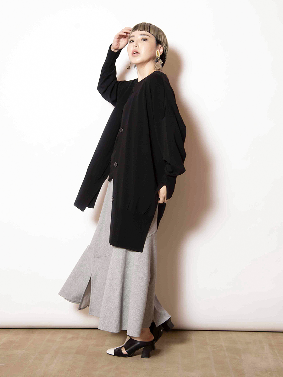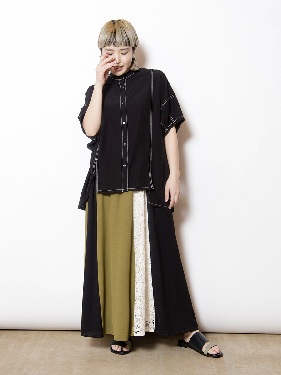 前後で異なるスカートをドッキングした、存在感のあるスカート。