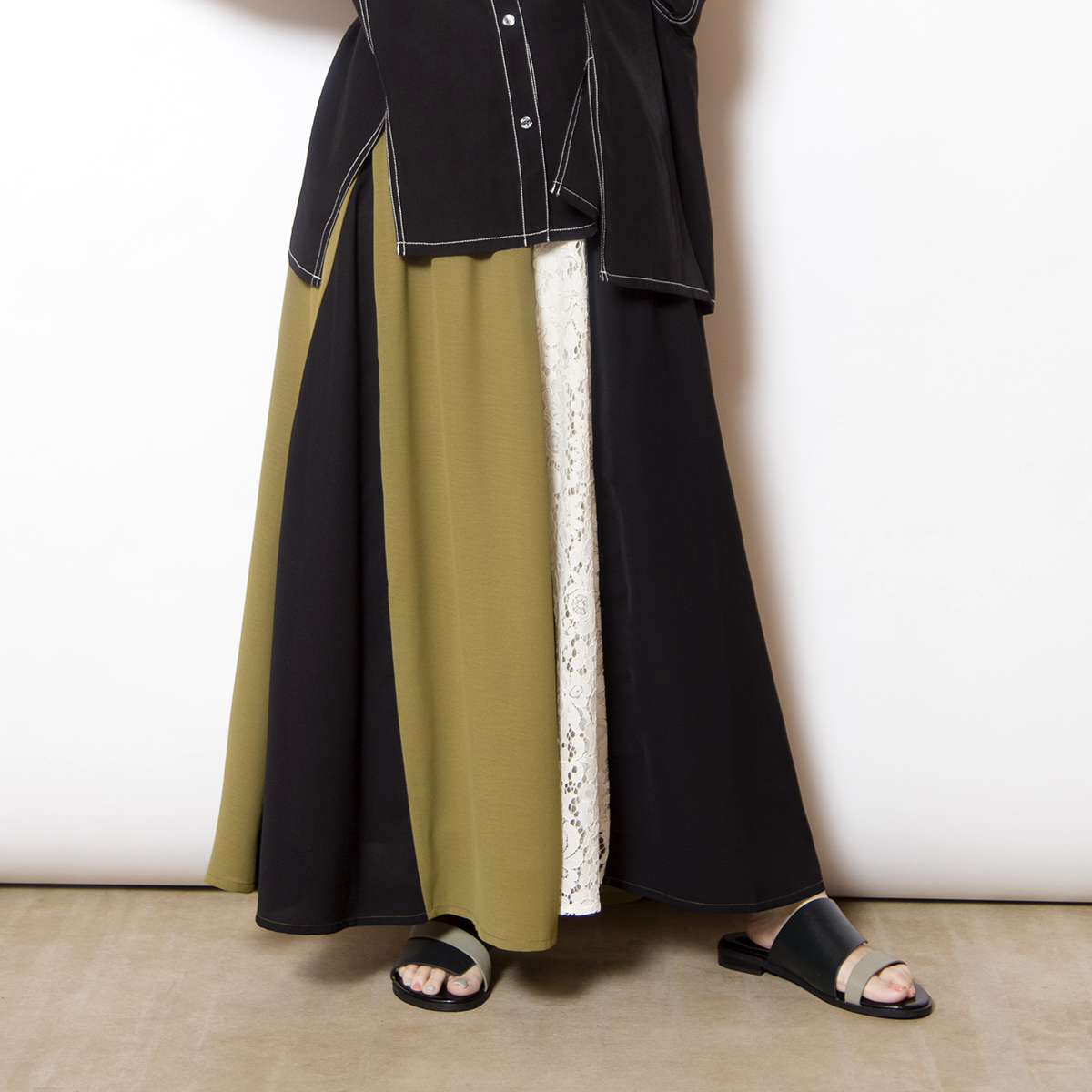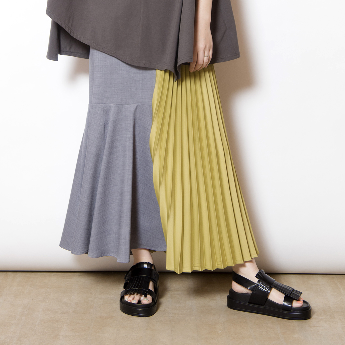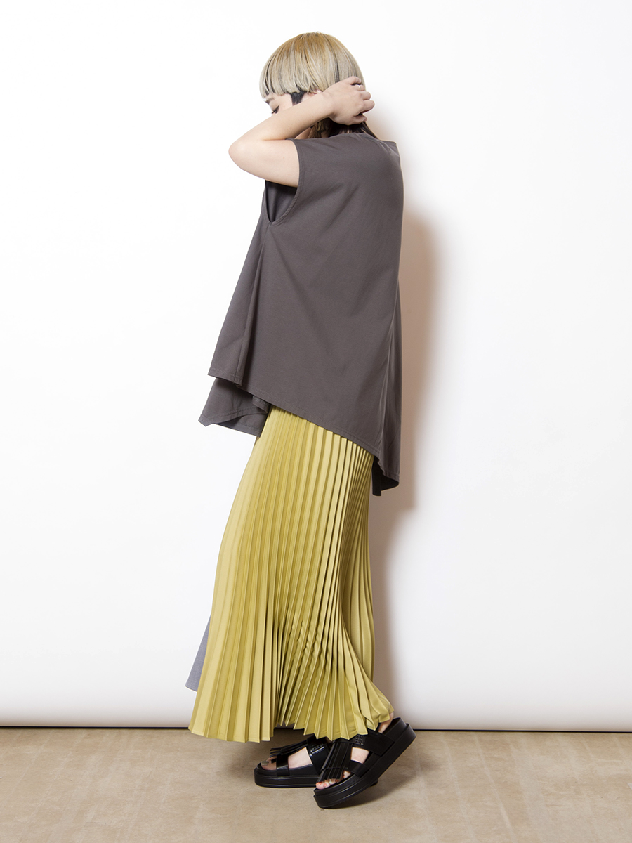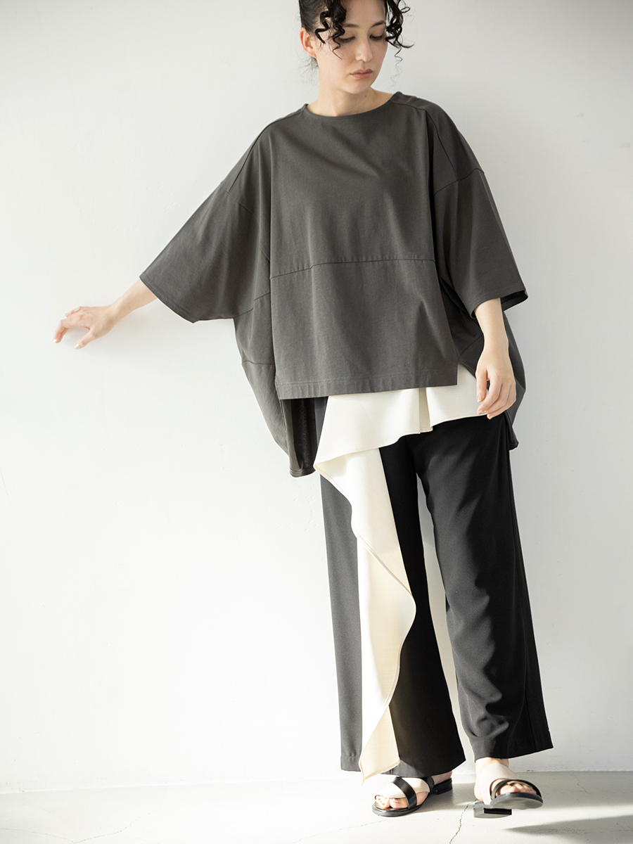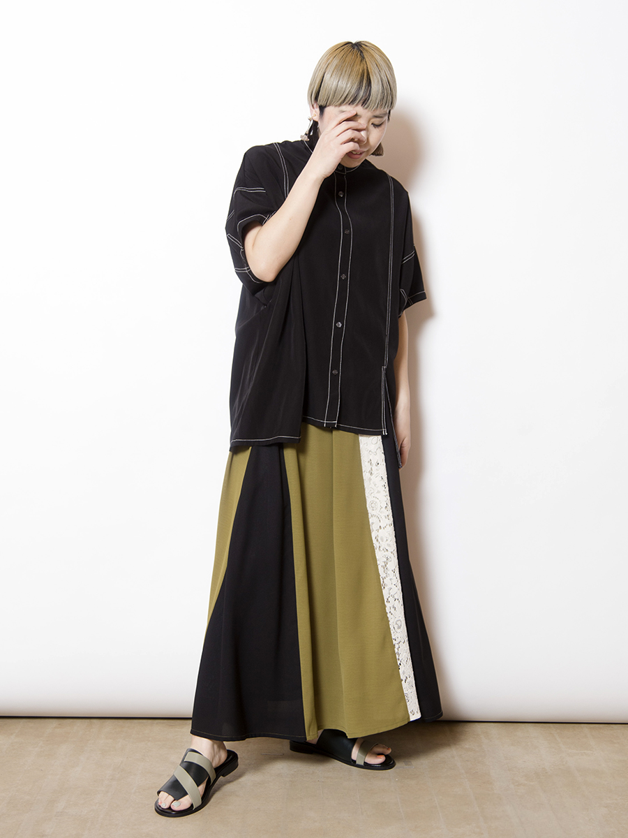 前後で異なるスカートをドッキングした、存在感のあるスカート。