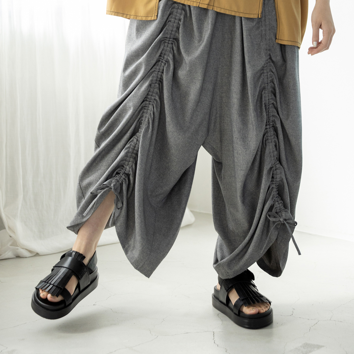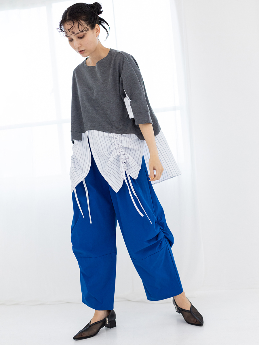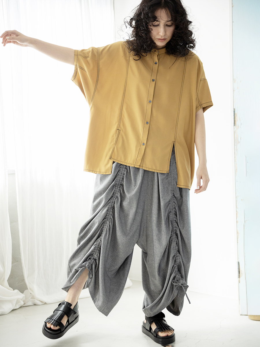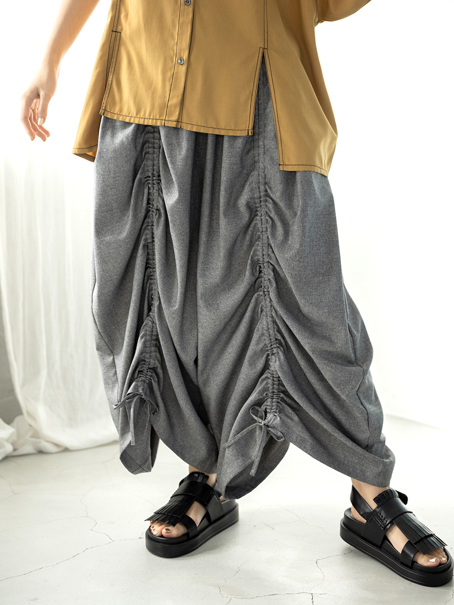 スカートに見間違うほどのギャザーパンツは、