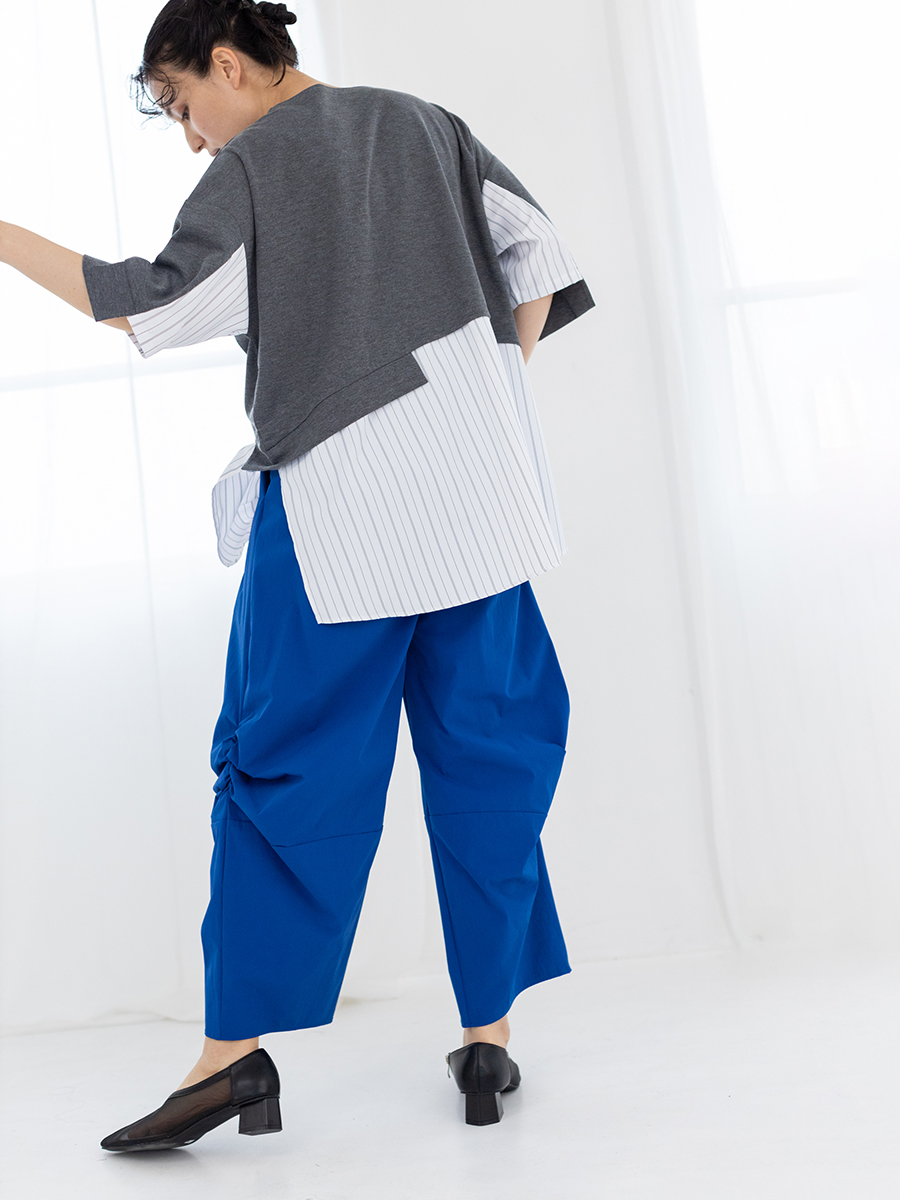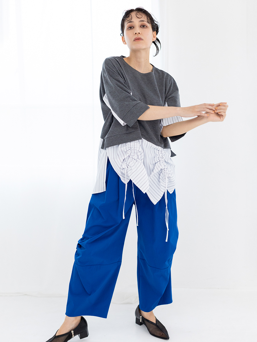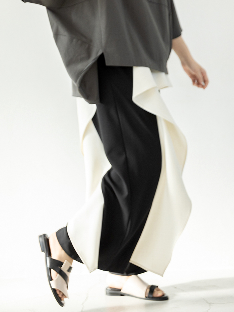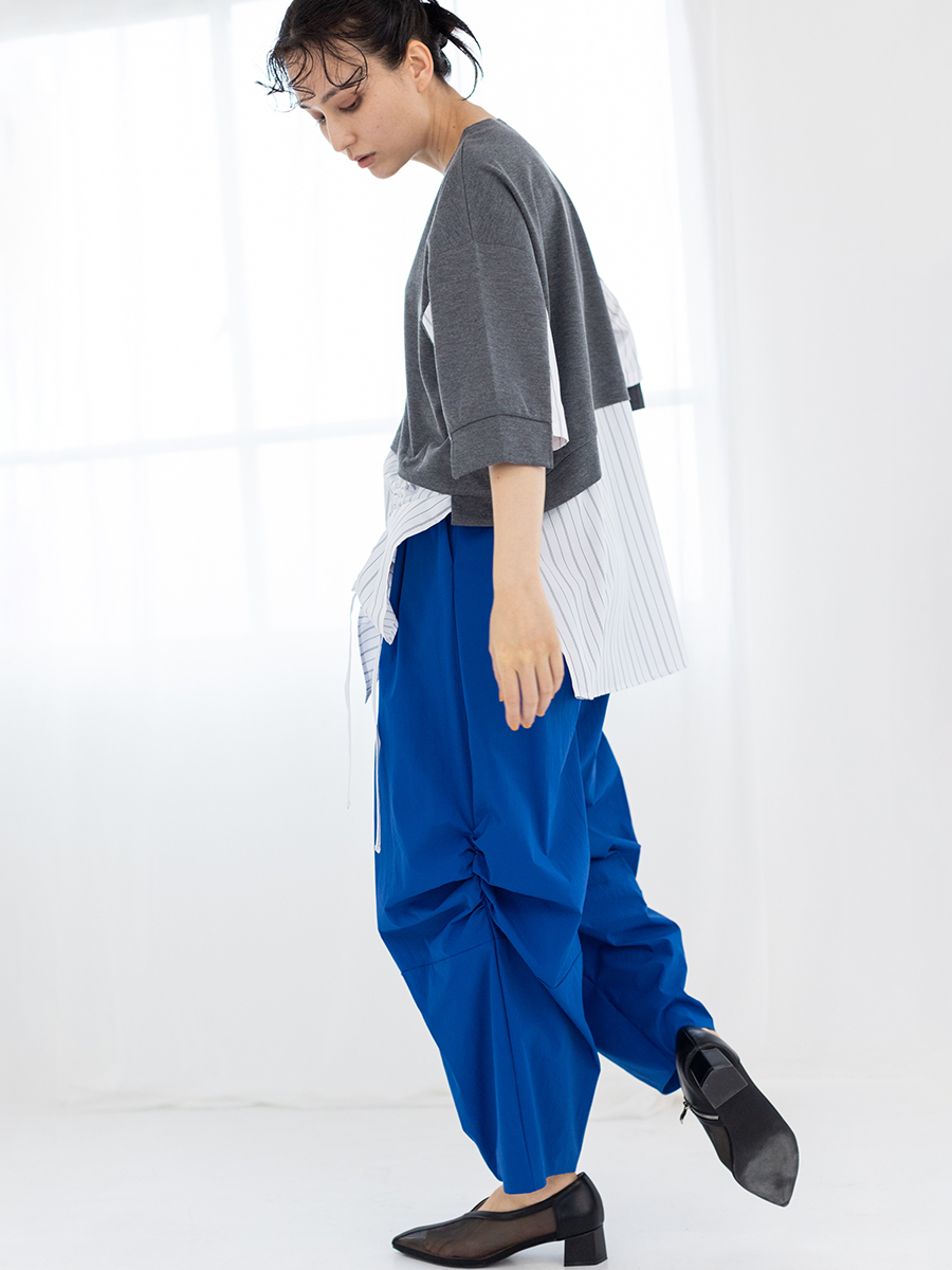 スカートに見間違うほどのギャザーパンツは、
