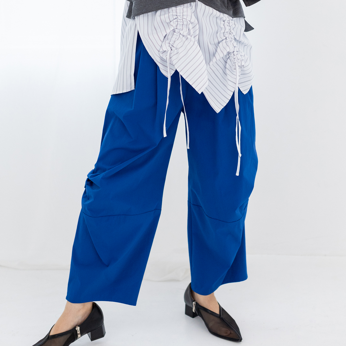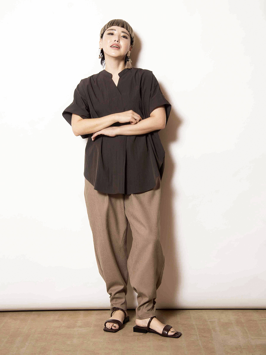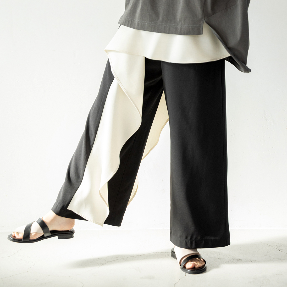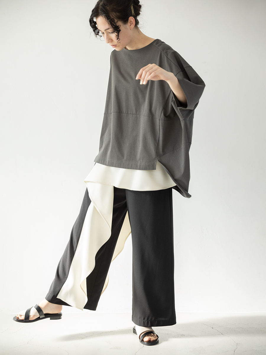 スカートに見間違うほどのギャザーパンツは、