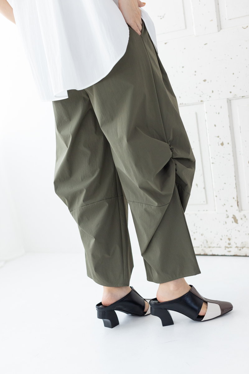 サイドタックから生まれるユニークなシルエットで、シンプルなコーデでも簡単にランクアップ。