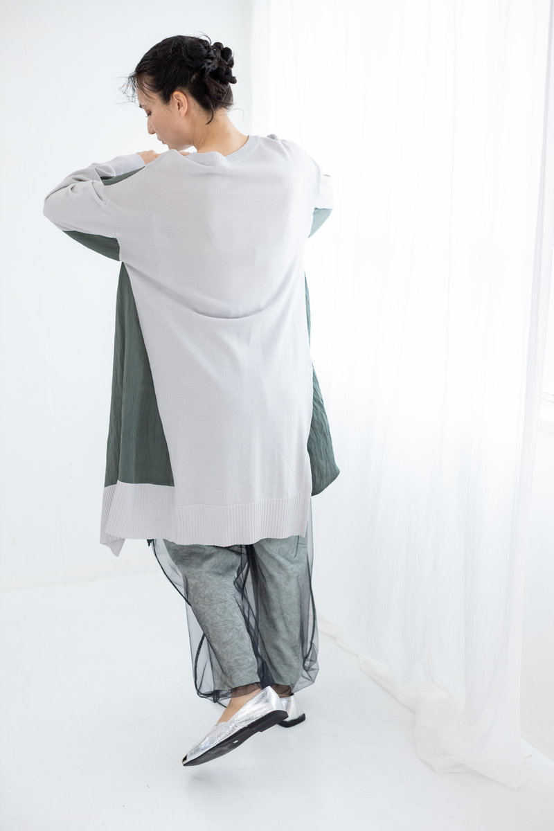 力の抜けたタンク&パンツルックにさらりと羽織れば、