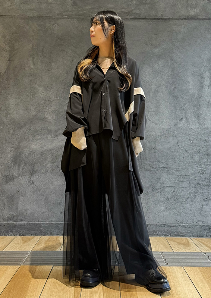 ルーズなシルエットを引き締める、スポーティなリブのアクセントがモードなブラウス。