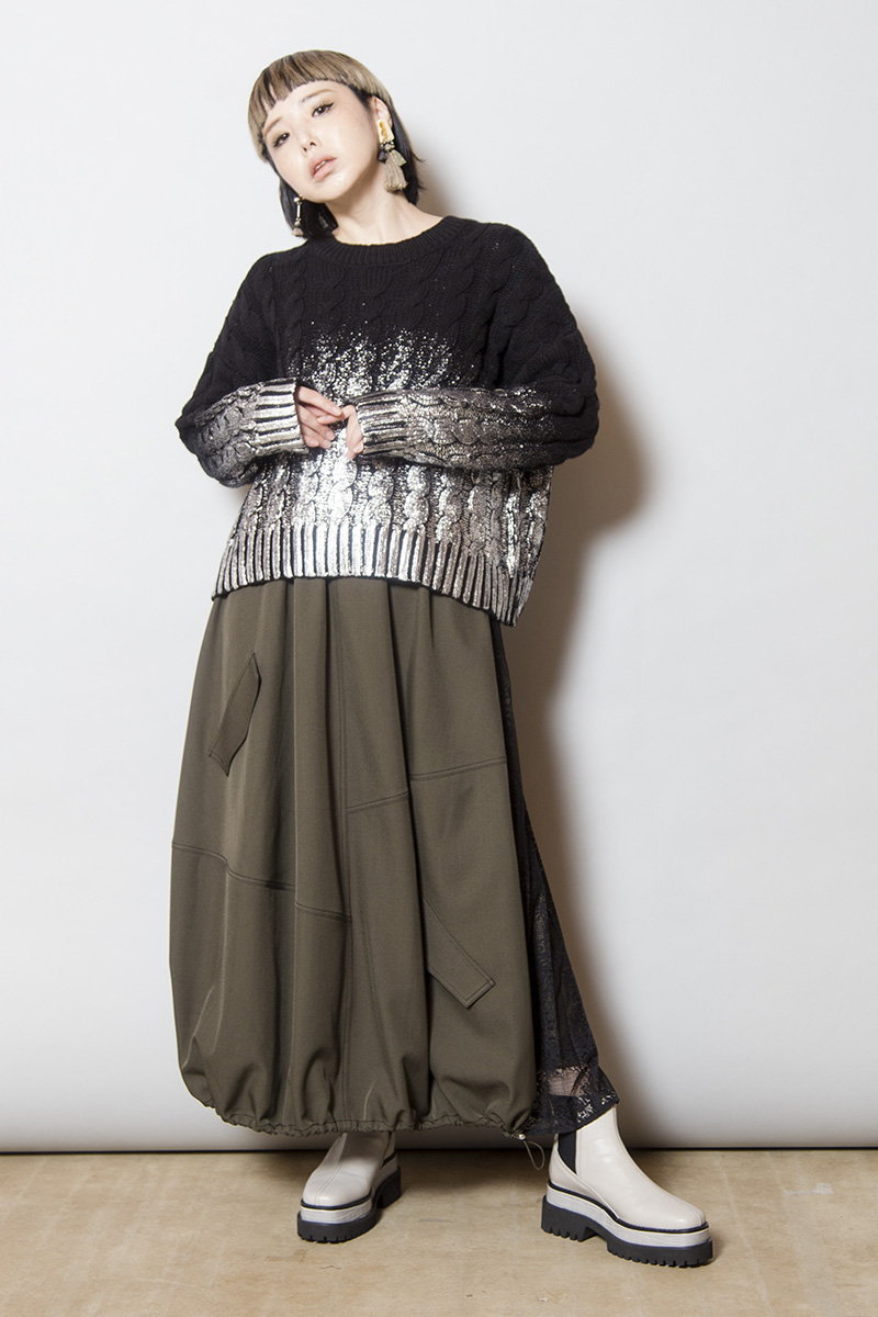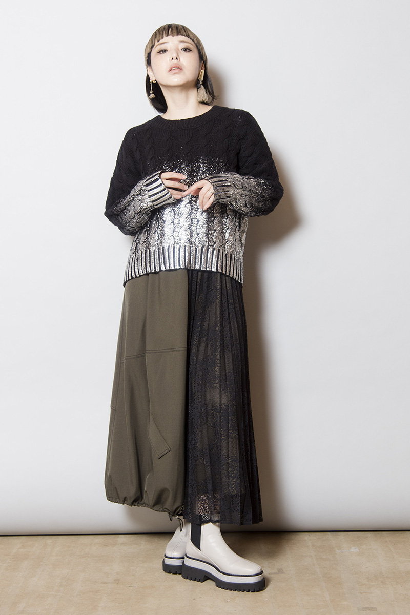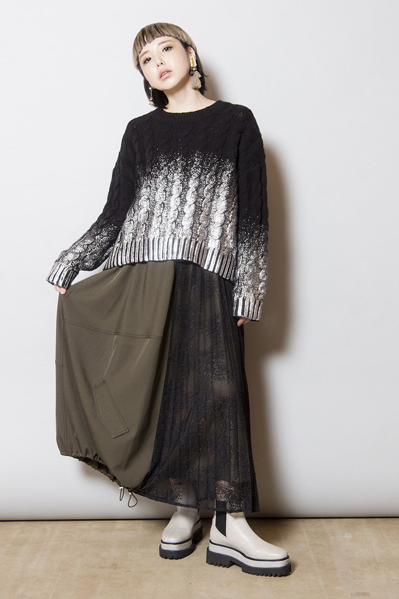 レースプリーツ切替スカート
